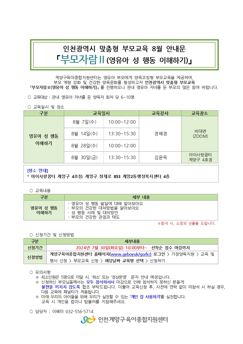 | 접수대상 | 부모, 일반 | 정원 | 10명 (신청: 13) |