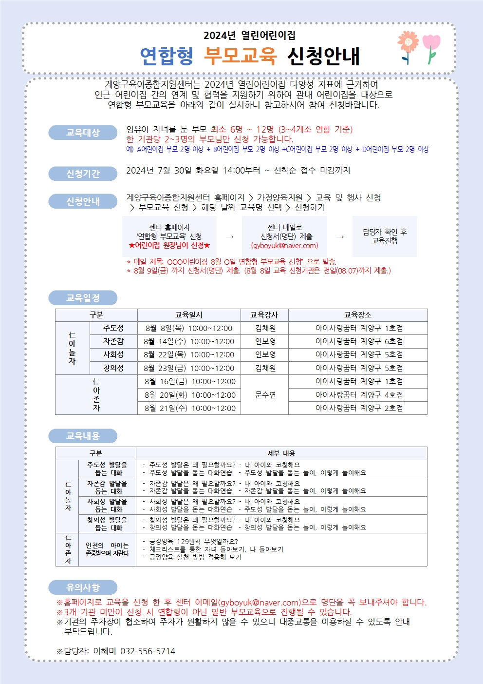 | 접수대상 | 원장, 보육교직원 | 정원 | 4명 (신청: 0) |