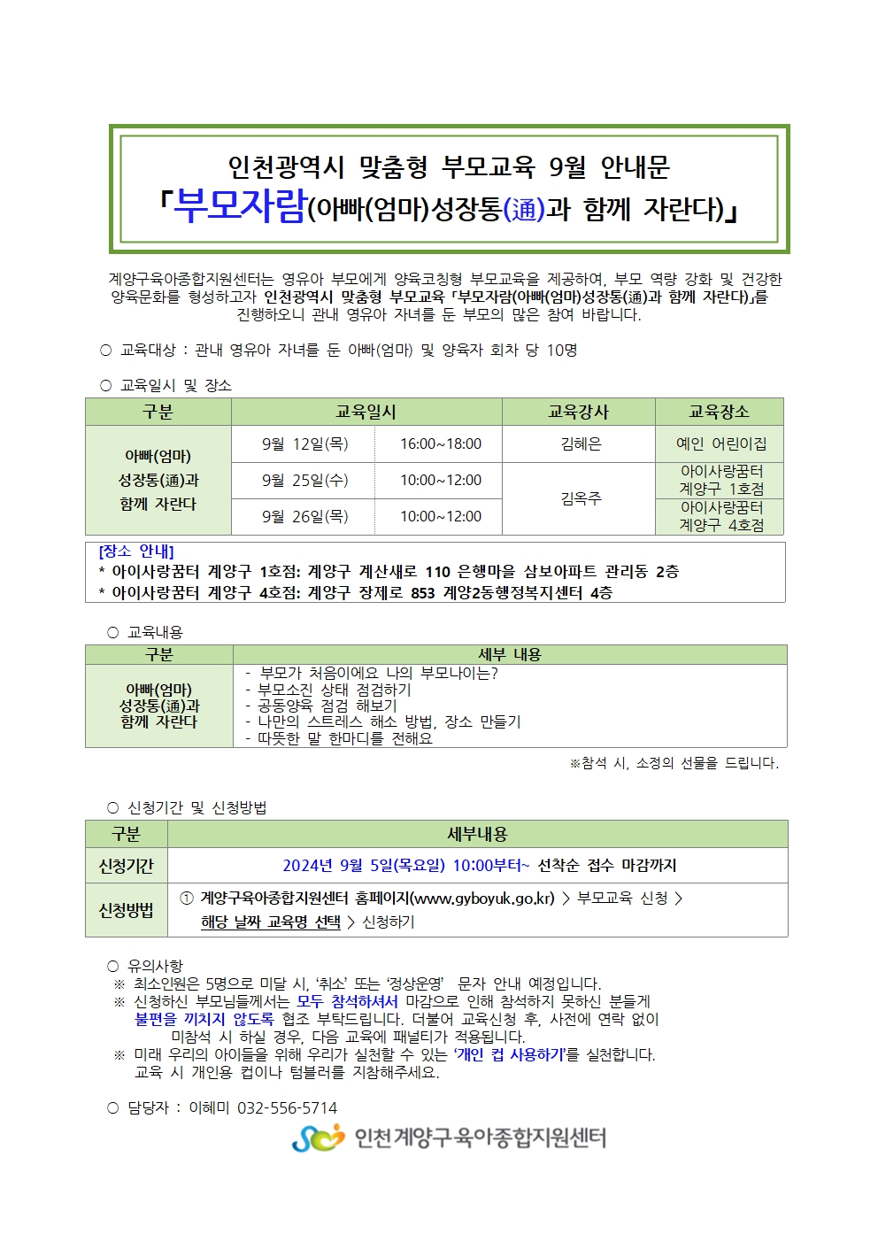 ★취소★[인천형 부모교육] 부모자람Ⅰ
