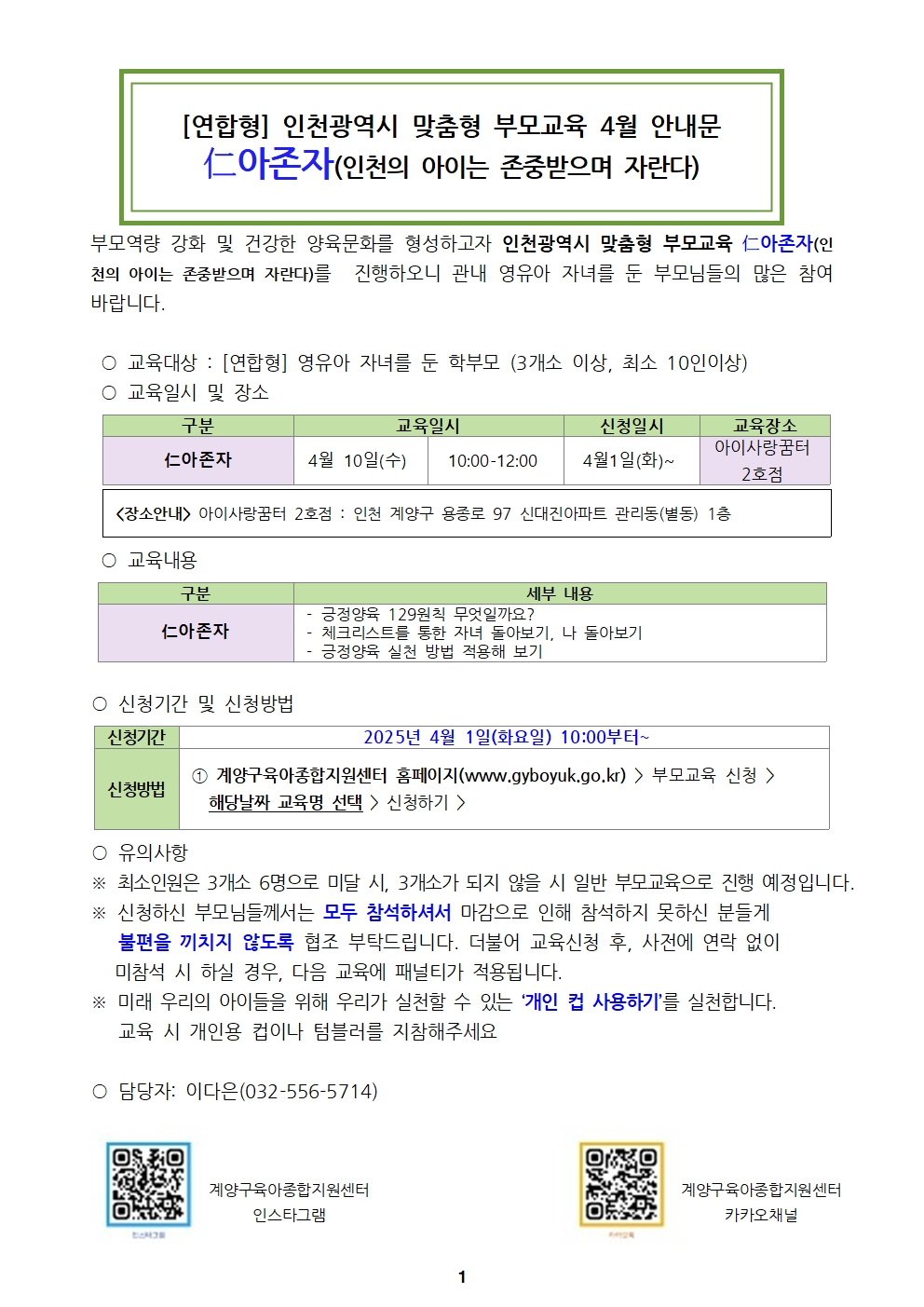 | 기타사항 | *어린이집 연합형 부모교육임으로 어린이집만 신청가능합니다. | ||