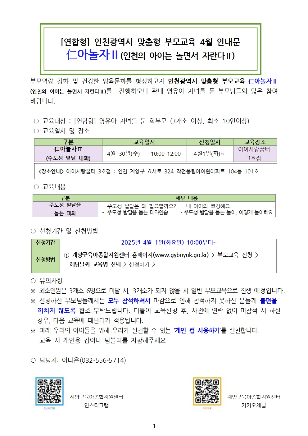 | 기타사항 | *어린이집 연합형 부모교육임으로 어린이집만 신청가능합니다. | ||