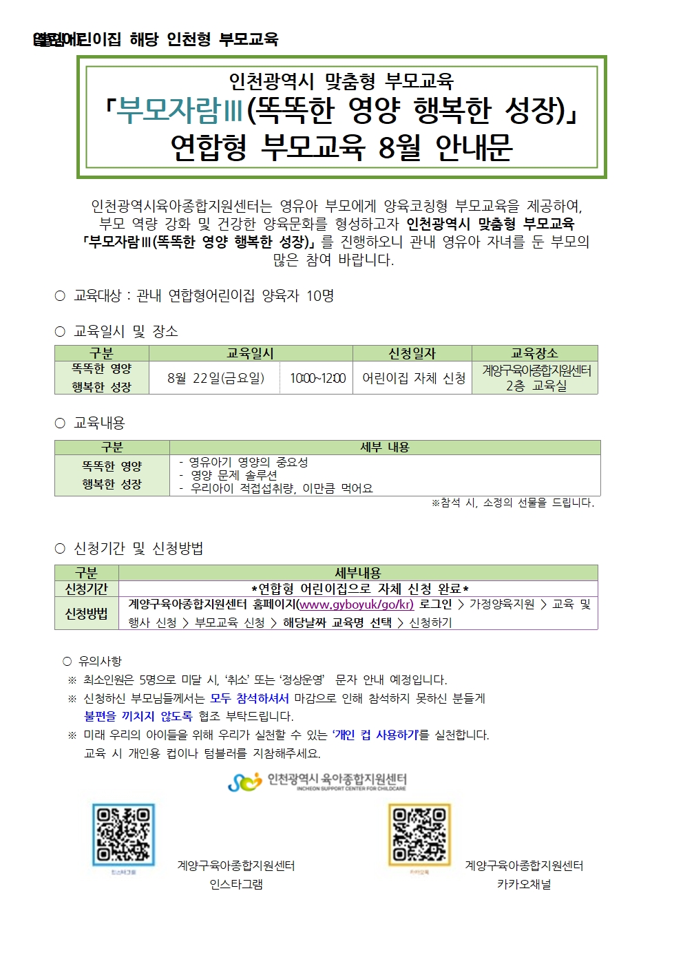 [연합형 인천형 부모교육] 부모자람Ⅲ (똑똑한영양 행복한성장)