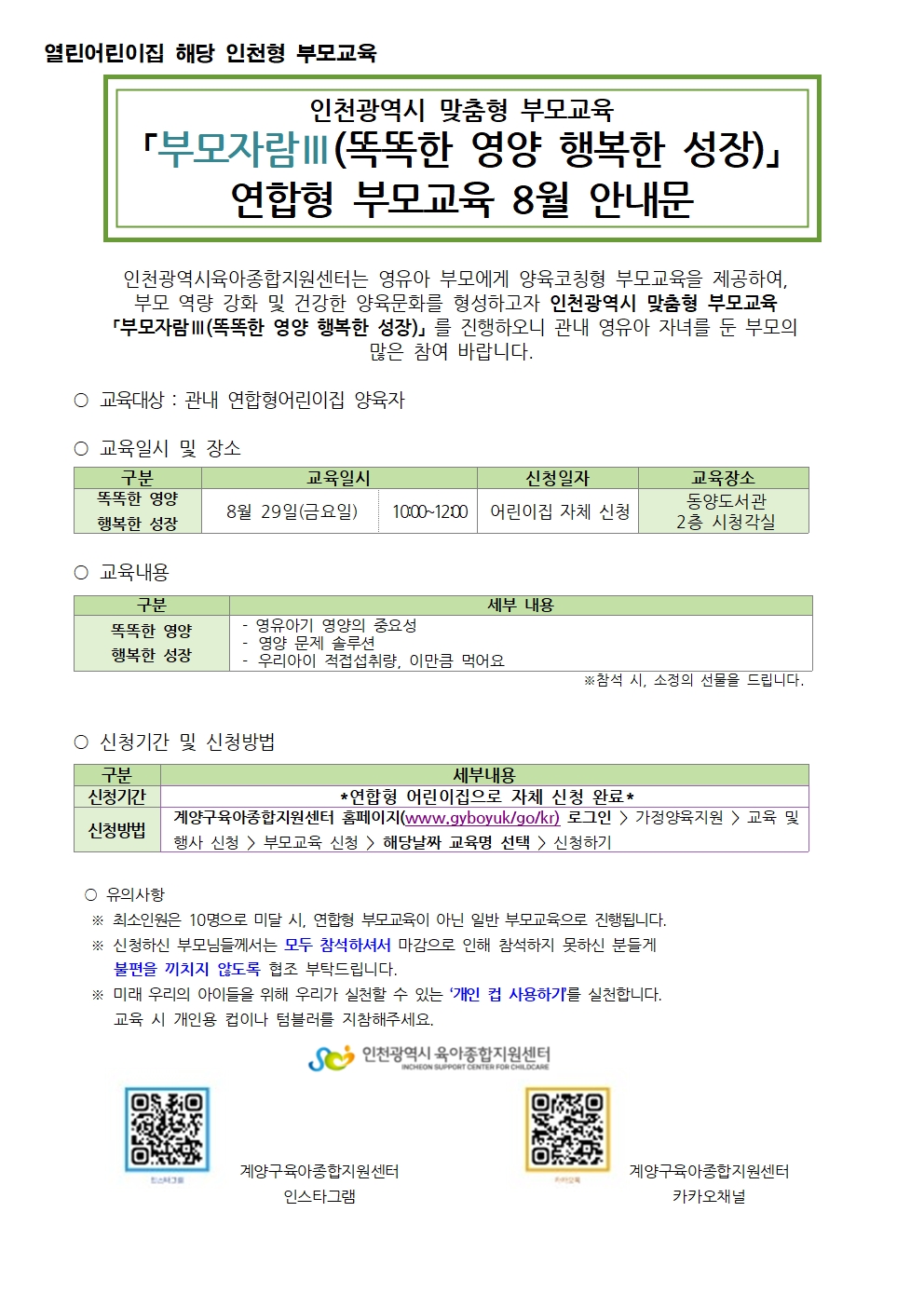 [연합형 인천형 부모교육] 부모자람Ⅲ (똑똑한영양 행복한성장)
