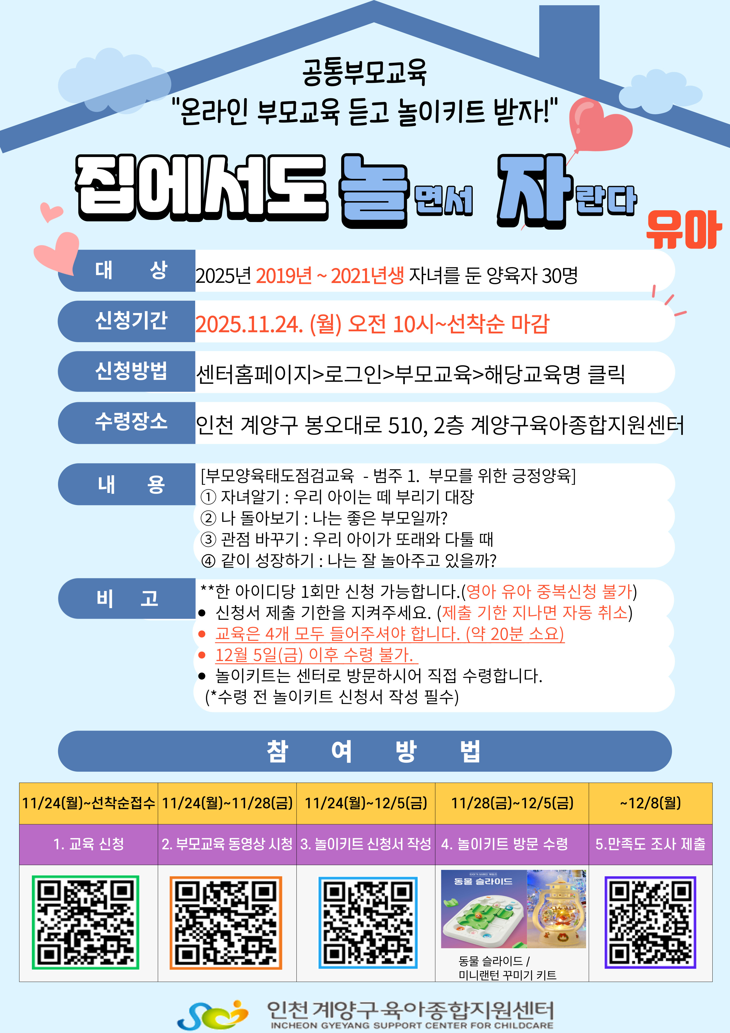 [비대면공통부모교육] 집에서도 놀(면서) 자(란다) - 부모양육태도점검 (유아)