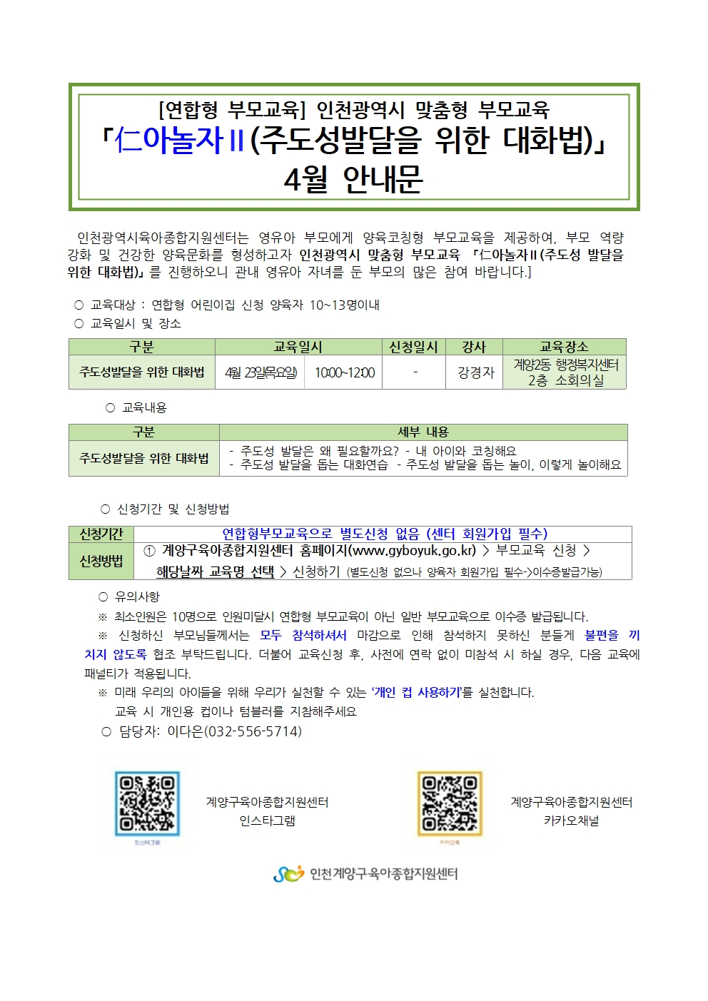 [연합형부모교육] 仁아놀자Ⅱ-주도성발달을 위한 대화법