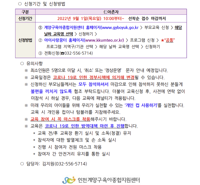 | 교육기간 | 2022-09-15(목) 10시20분 ~ 2022-09-15(목) 12시20분 | ||