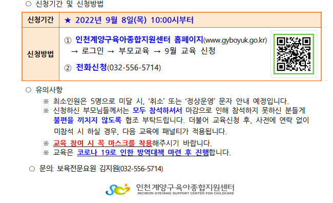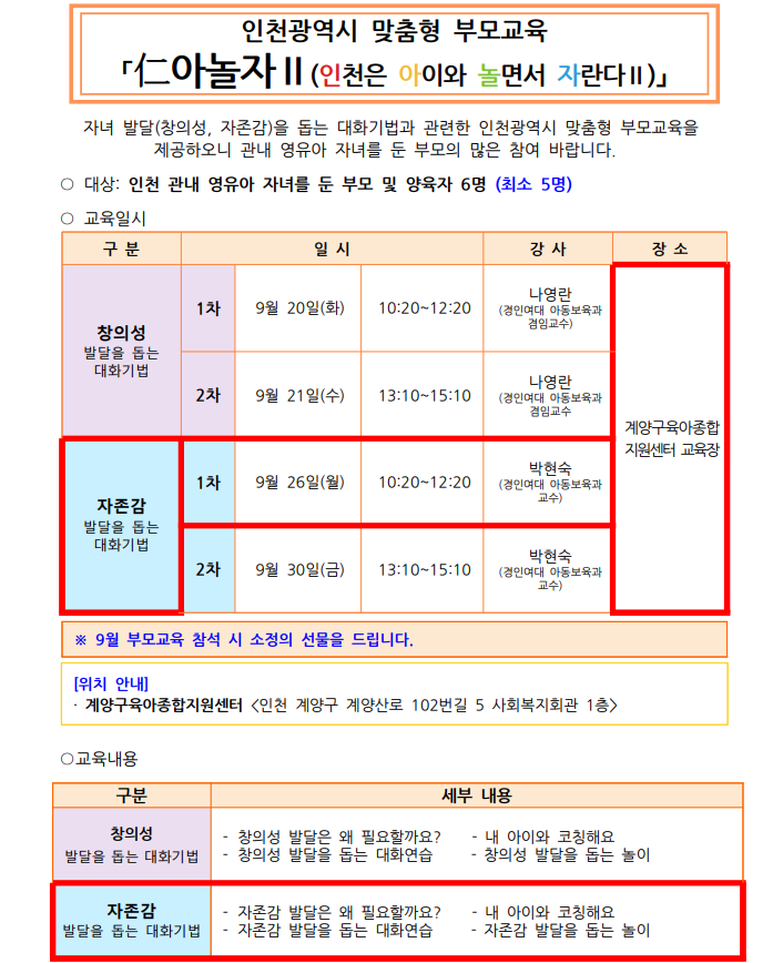 | 장소 | 계양구육아종합지원센터 1층 교육장 | ||