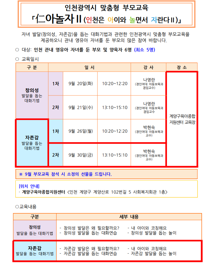 | 장소 | 계양구육아종합지원센터 1층 교육장 | ||