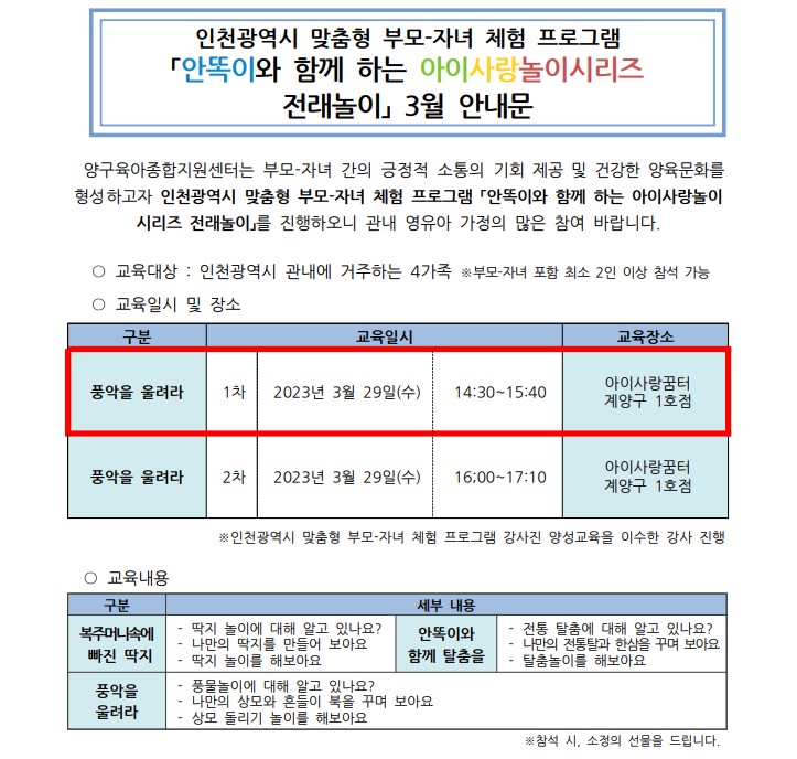 (꿈터1호점, 14:30) 전래놀이 - 풍악을 울려라