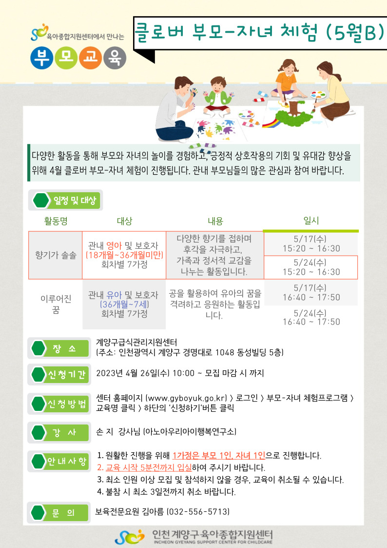 | 접수대상 | 부모, 일반 | 정원 | 7명 (신청: 8) |