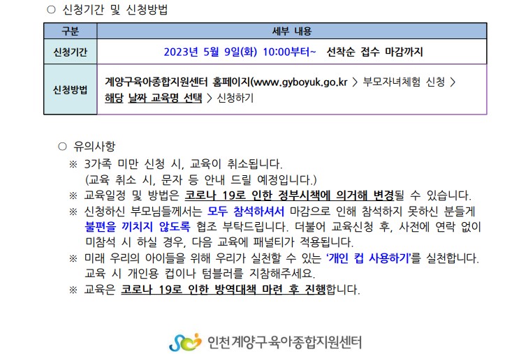 ※ 교육 신청하려면 신청하기버튼을 클릭한 후 신청서를 작성해 주시기 바랍니다.