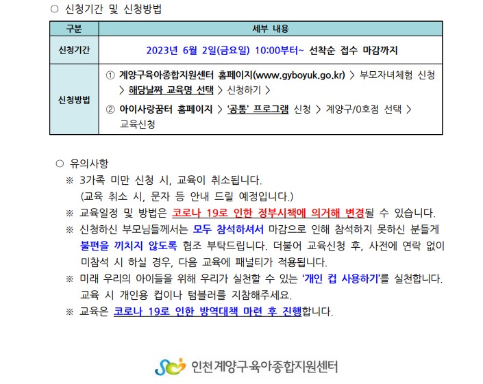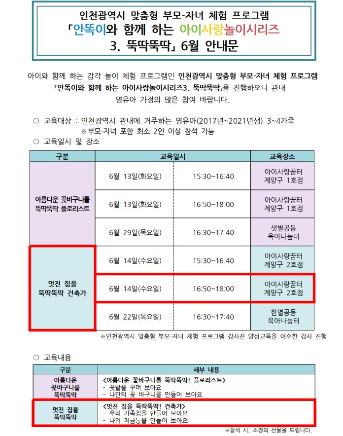6/14(수) 오후 4시 50분~6시, 아이사랑꿈터 계양구 2호점에서 진행