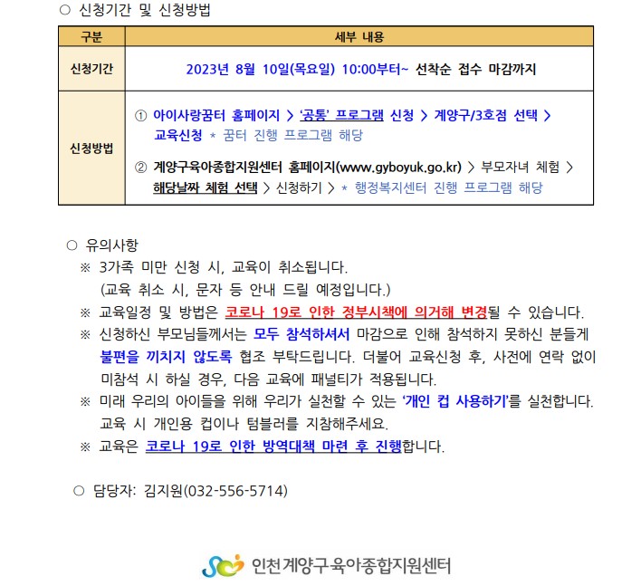 | 접수대상 | 부모, 일반 | 정원 | 0명 (신청: 0) |