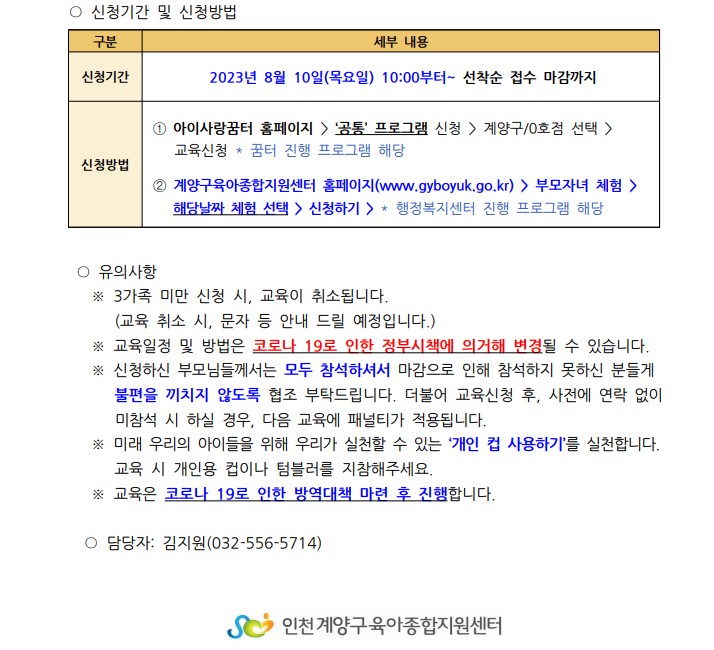 ※ 교육 신청하려면 신청하기버튼을 클릭한 후 신청서를 작성해 주시기 바랍니다.