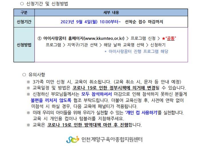 아이사랑꿈터 홈페이지 - 공통 프로그램 탭(계양구/1호점)에서 신청해주시기 바랍니다.