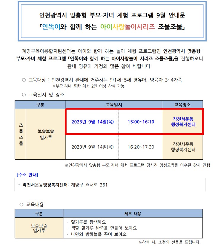 (작전서운동행복지센터, 15:00) 안똑이-보슬보슬 밀가루