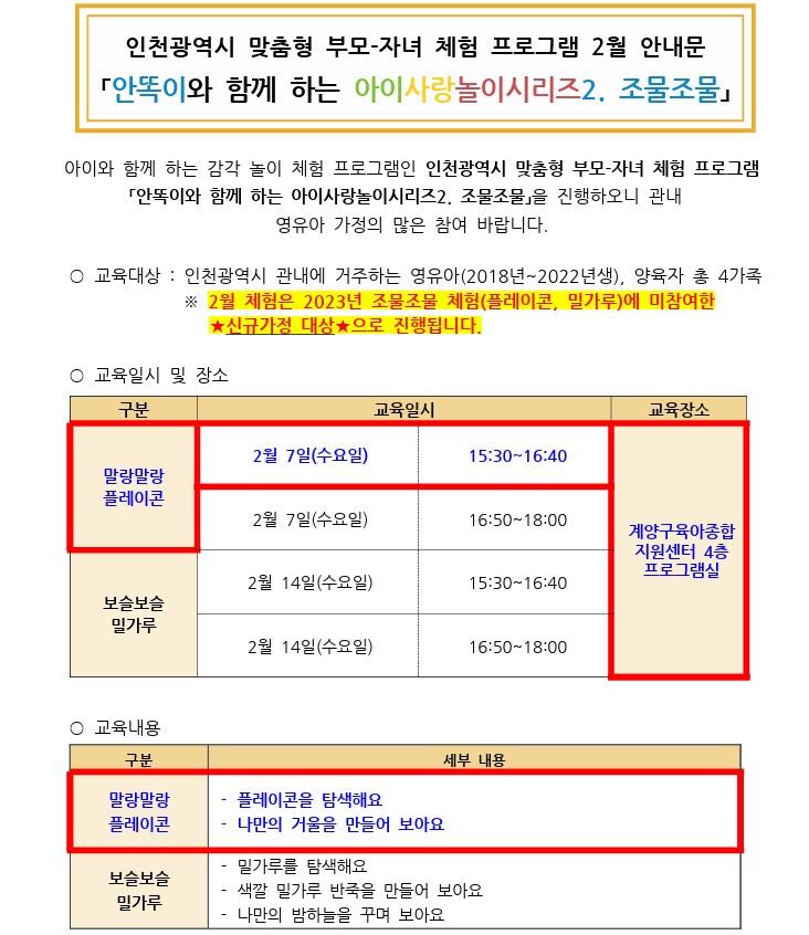 | 장소 | 계양구육아종합지원센터 4층 프로그램실 | ||
