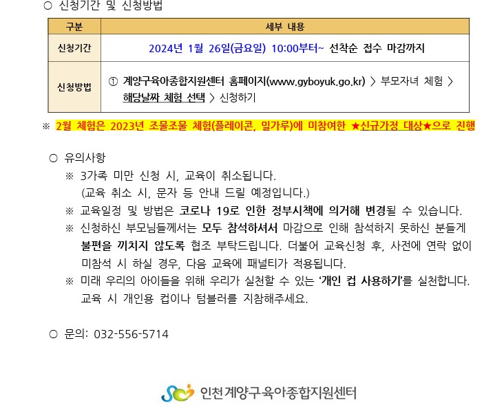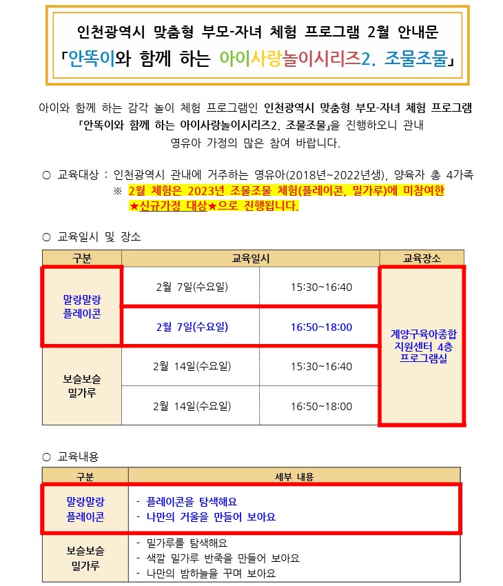 | 장소 | 계양구육아종합지원센터 4층 프로그램실 | ||