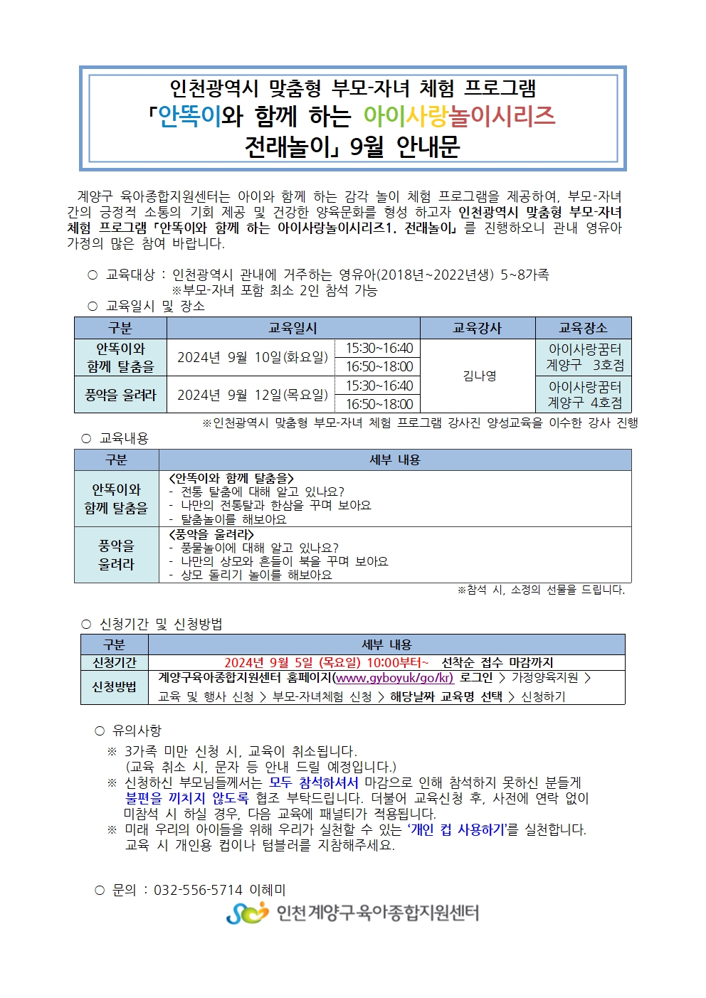 [인천형 부모-자녀체험] 안똑이 놀이시리즈-전래놀이(안똑이와 함께 탈춤을)