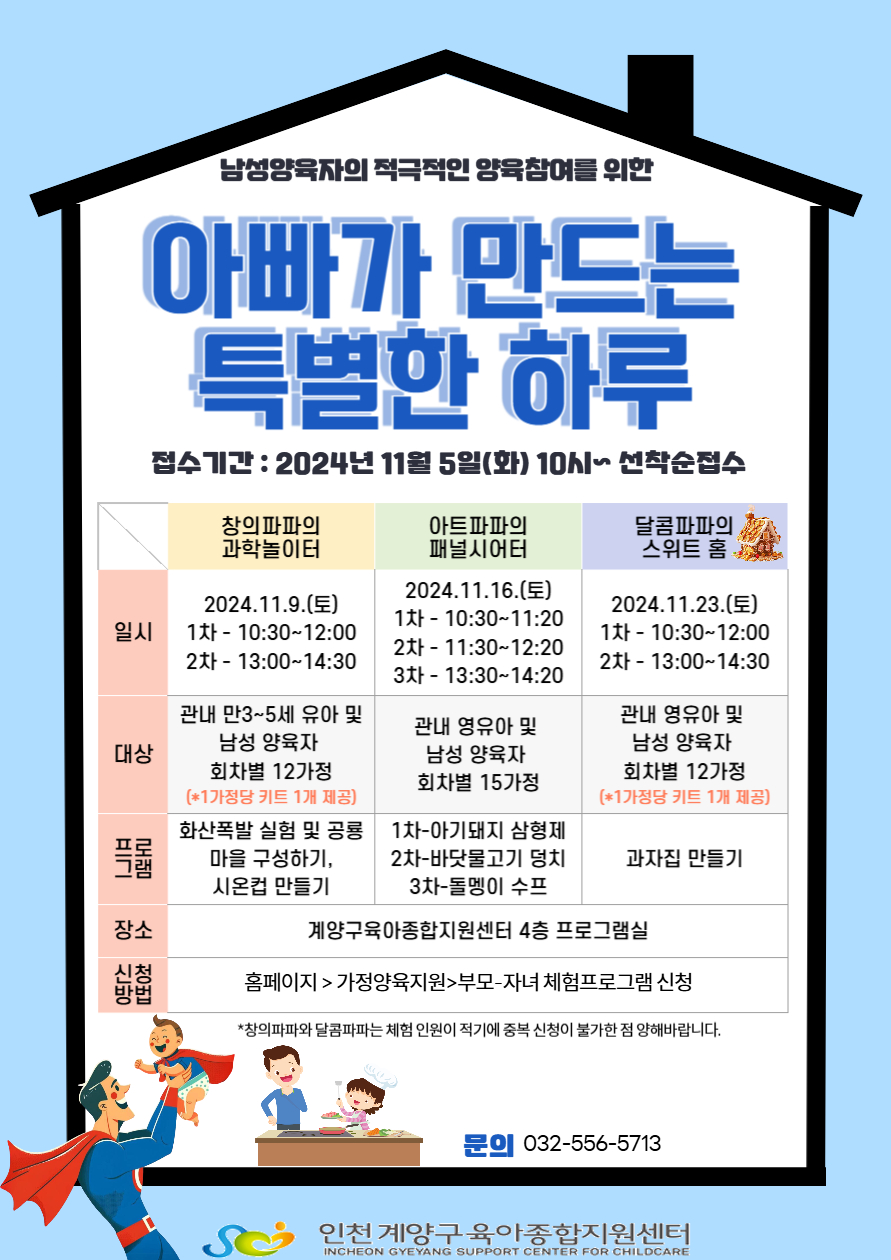 -남성양육자와 아이만 참석가능합니다. -키트는 가정당 1개씩 제공됩니다. |