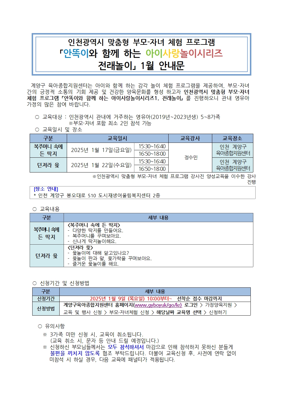 | 장소 | 센터 프로그램실 (계양구 봉오대로 510, 4층) | ||
