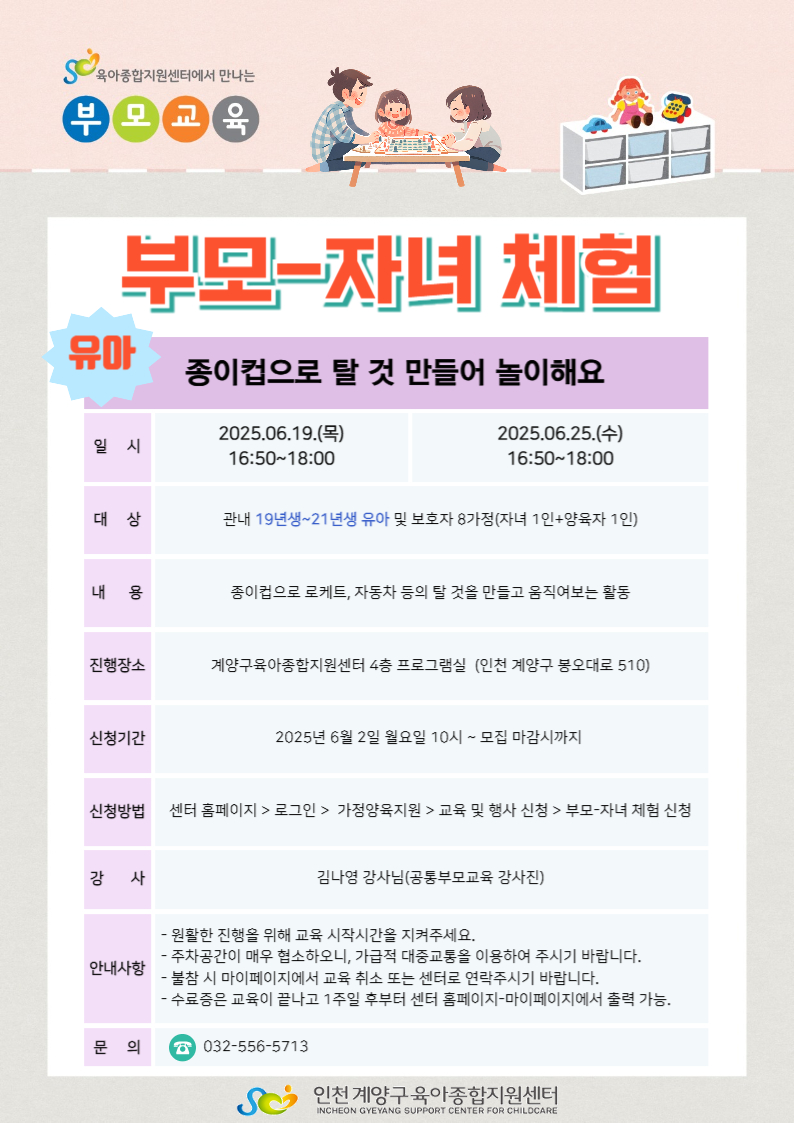 [6/25]공통 부모-자녀체험 [유아-종이컵으로 탈 것 만들어 놀이해요]