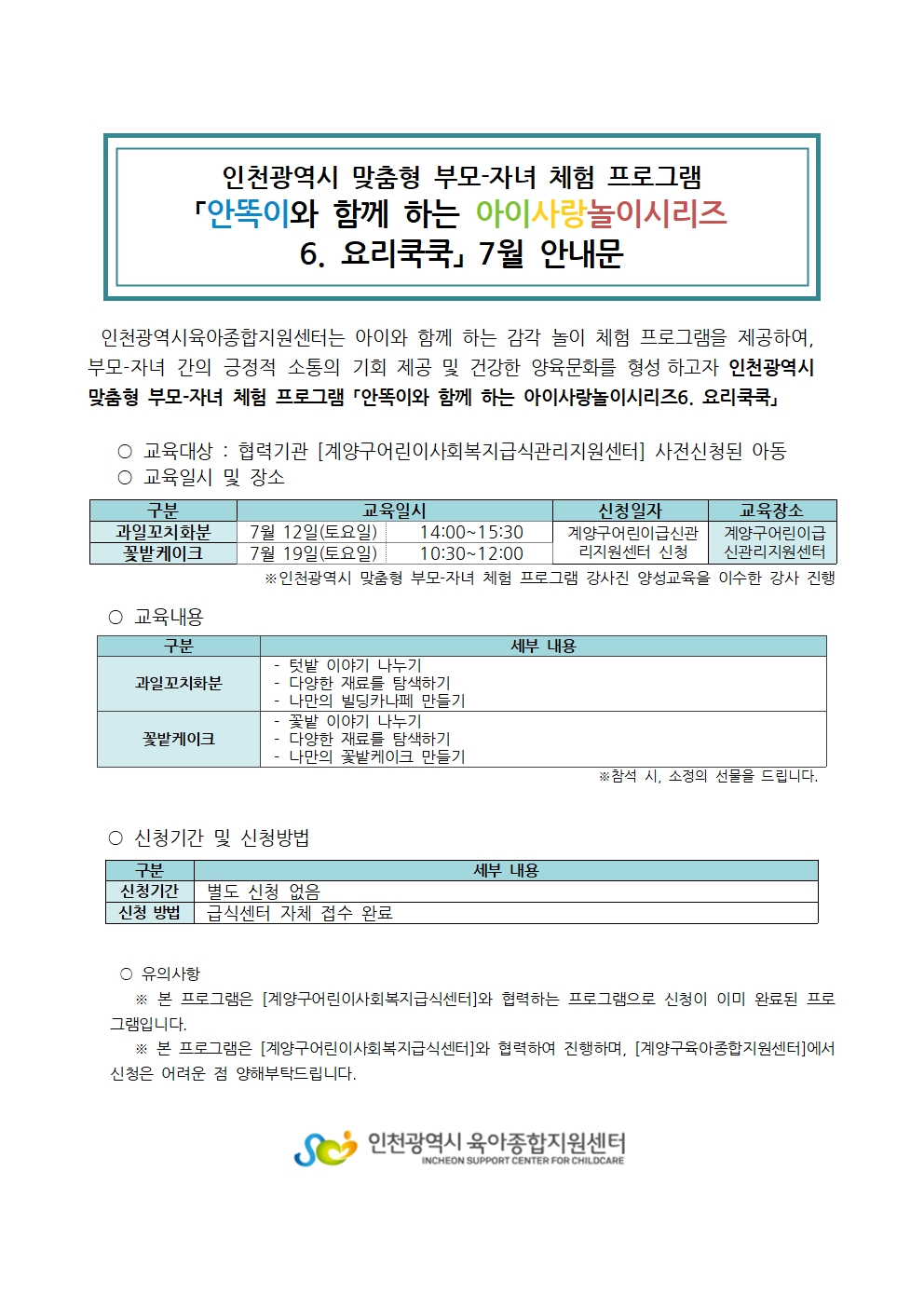 | 장소 | 계양구어린이사회복지급식센터 | ||