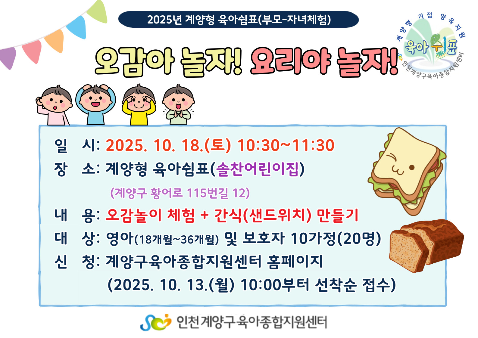 계양형 육아쉼표 교육으로 지역의 거점어린이집에서 진행됩니다. 교육 장소는 솔찬 어린이집 입니다. (계양구 황어로 115번길 12) |