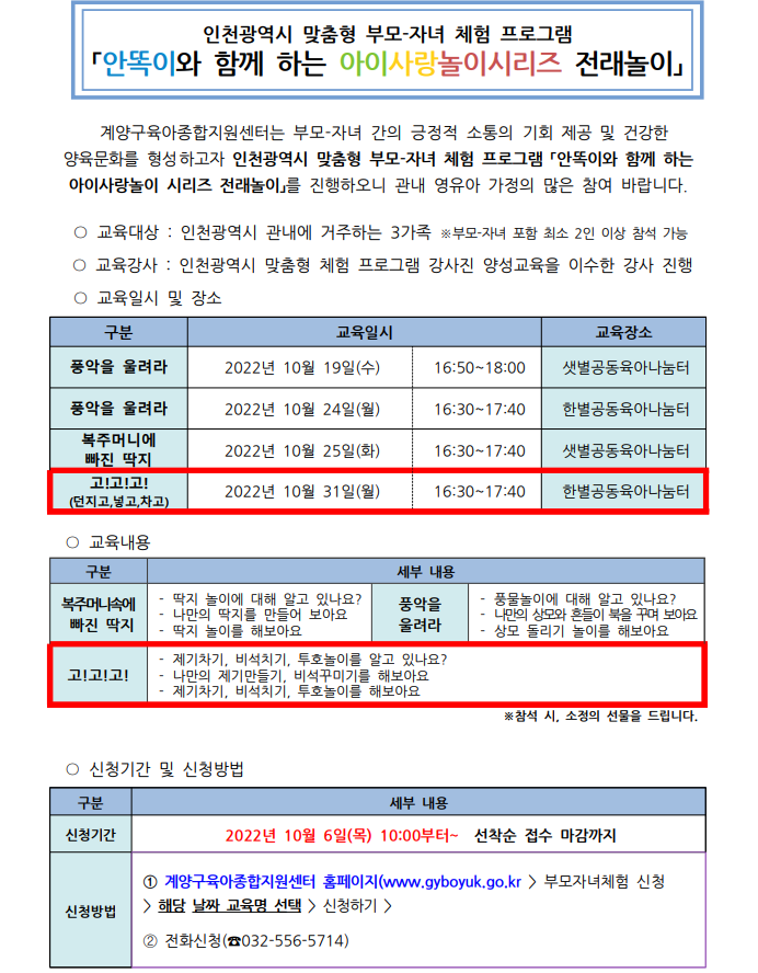 (한별공육, 16:30) 전래놀이 - 고고고!