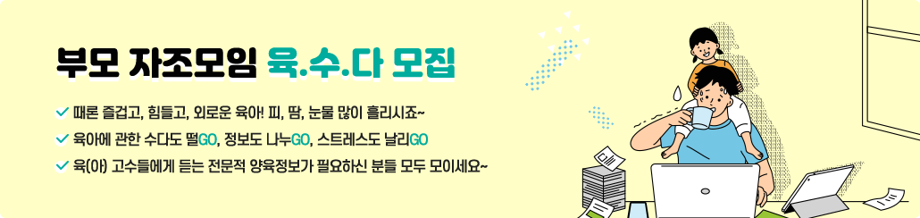 모집인원 : 알콩달콩 부모-자녀 활동 2팀(총 6가정) 육(아)수다 부모 활동 – 2팀(각 5명 이내)