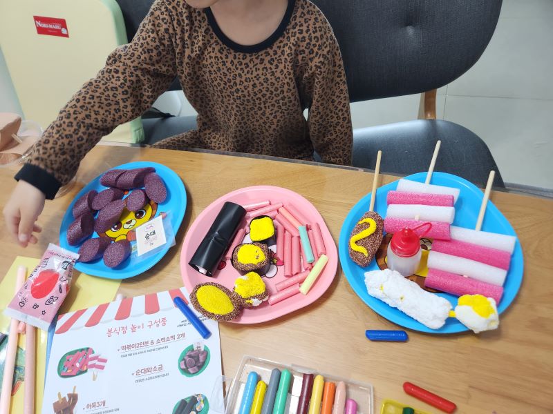 아이들이랑 소떡소떡 어묵 핫도그등도 만들어보고 손님 역할도 정해보며 번갈아 놀이하니 아이들이 너무 재미있어 하더라구요.